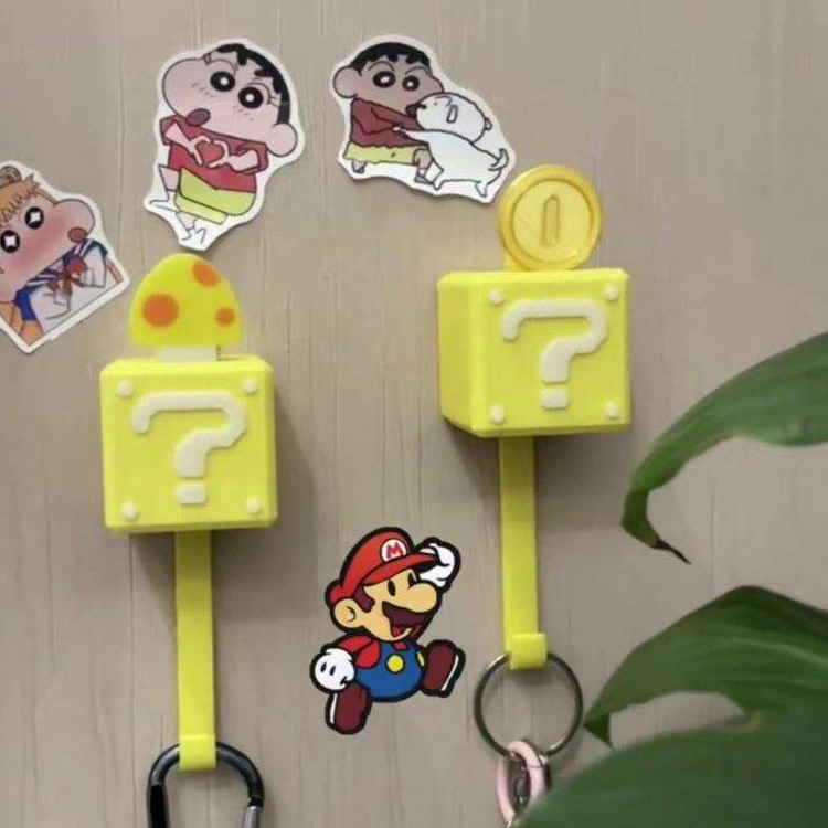 Arna spreagadh ag aeistéitic clasaiceach físchluiche, tá bloc ceisteanna 3D priontáilte i stíl Mario agus variant carachtar iontach sa chrochadán lárnach seo. Ní réiteach stórála feidhmiúil amháin é - is maisiú spraíúil agus cumhach é a thugann áthas do spás ar bith.