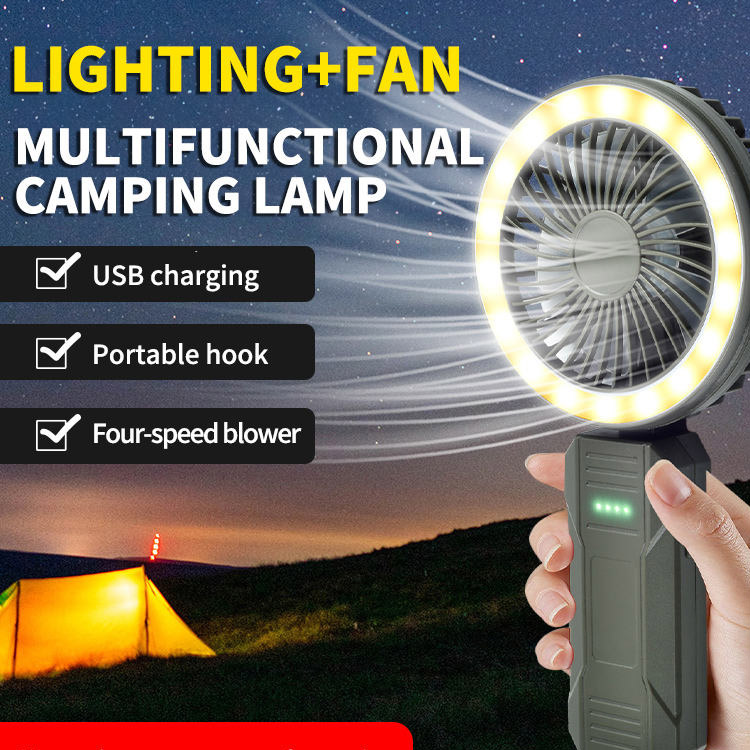 Lampa Boise Mini Ilfheidhmeach Lasmuigh 4000mAh Fan.Stay Cool And Illuminated Ar Gach Do Eachtraí. Comhcheanglaíonn an Lampa Fan Camping LED Inaistrithe seo Fan Cumhachtach Le Soilsiú Geal. Cinntíonn a Ceallraí Móra 4000mAh Cumhacht In-athluchtaithe USB Fada Buan. Tá an Dlúth, Dearadh Boise Foirfe d'Úsáid Allamuigh.