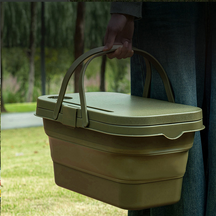 Basket Allamuigh Camping Hiking Picnic Stórála Container.Your Réiteach Eagraíocht Inaistrithe Deiridh Chun Eachtraí Lasmuigh. Comhcheanglaíonn an Ciseán Ilfheidhmeach Infhillte seo Coimeádán Stórála Le Dromchla Tábla Tógtha. Déanta as Plaisteach CRUA, Tá sé Foirfe Do Champála, Hiking, agus Turais Picnic.