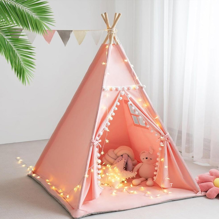 Teach Súgartha Cotton Canbhás Leanaí Tent Teepee for Kids with Mat