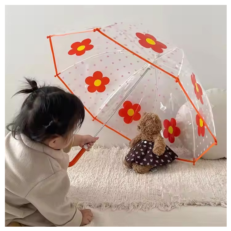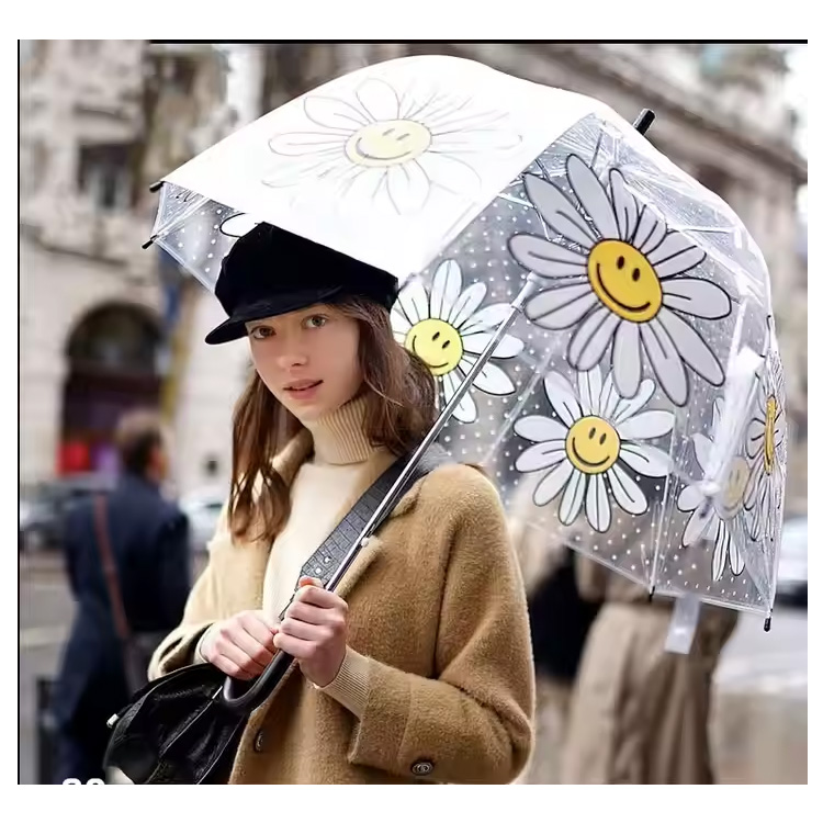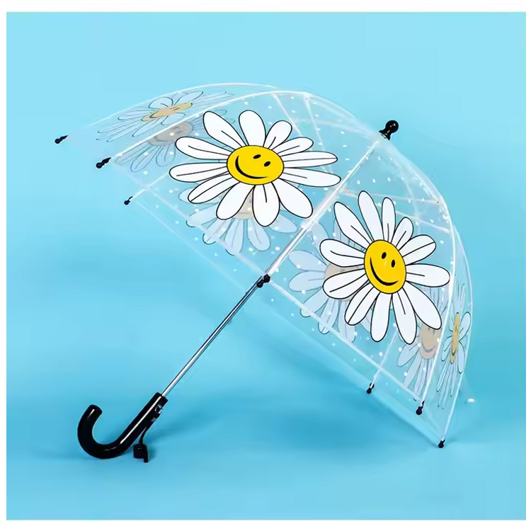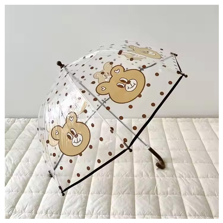 Clúdaithe i bpriontaí aonbheann agus tuar ceatha geal agus spraíúil, tarraingíonn an scáth seo aird na bpáistí láithreach. Ligeann a cheannbhrat trédhearcach do leanaí a fheiceáil cá bhfuil siad ag dul agus iad ag fanacht cosanta - ag cur spraoi agus draíocht le gach lá báistí.