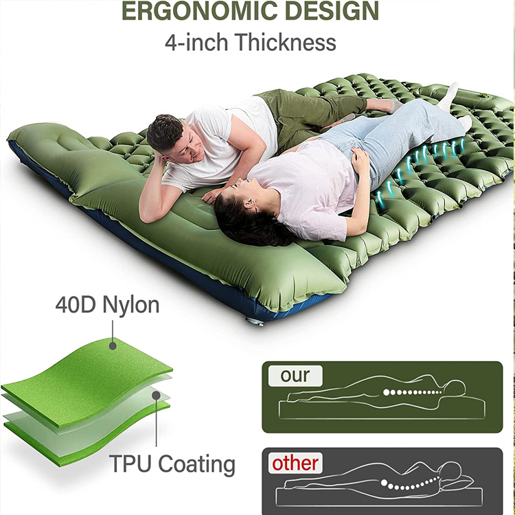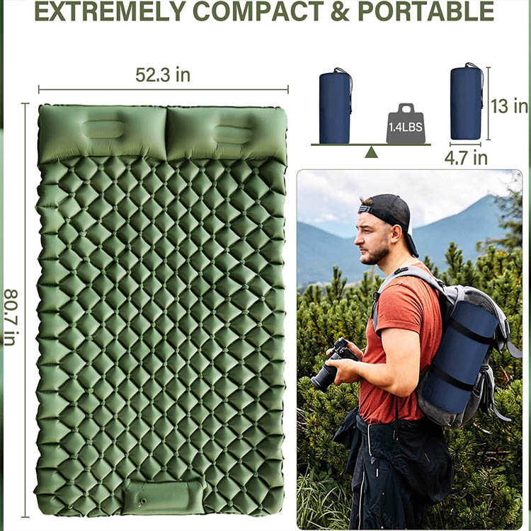 Pad Codlata Campála Dúbailte-Duine Pad Campála Inséidte.Ultimate Compord Dúbailte Le haghaidh Eachtraí Lasmuigh. Tairgeann an Ceap Campála Inséidte Beirt Dhuine Spás Codlata Mór Le Dearadh Nuálaíoch chun Srianadh Coise a Chosc chun Sleamhnáin a Chosc. Mar Réiteach Ultra-Éadrom, Seachadann sé Inaistritheacht Gan Chomhoiriúnú agus Compord Comhroinnte Do Lánúineacha Campála agus Cairde.