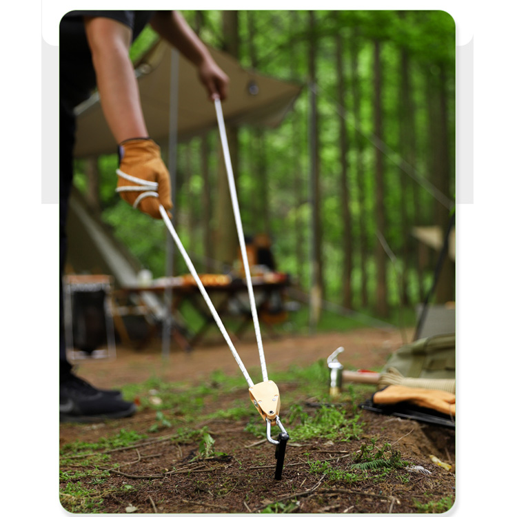 Foirfe chun pubaill, ceannbhrait, sciatháin, tarpaí agus scáthanna lasmuigh a dhaingniú. Oibríonn an méid caighdeánaithe leis an chuid is mó línte guy agus pointí ceangail.