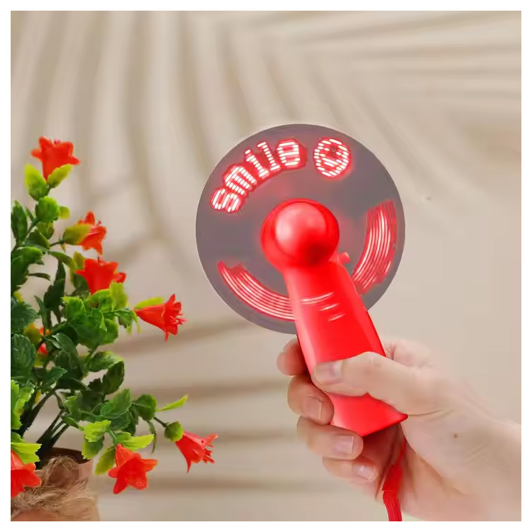 Nua Mini Inaistrithe Handy Faoi stiúir Teachtaireacht Chustaim Battery Fan.Mini Inaistrithe LED Teachtaireacht Fan— Dlúth, Cumhachtaithe ag Cadhnra, Agus Inoiriúnaithe le Téacs Scrollaigh. Seachadann Breeze Cool Agus Do Bhranda nó do Theachtaireacht á Thaispeáint i Soilse Geala faoi stiúir. Foirfe Le haghaidh Imeachtaí, Páirtithe, Nó Bronntanais Chun Cinn.