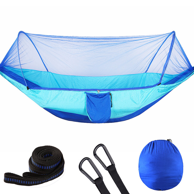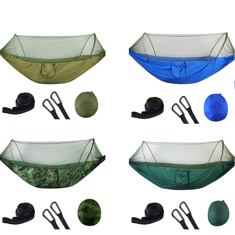 Éadach níolón Hammock Camping Go hiomlán uathoibríoch Quick Open.Your Réiteach Hammock Uile-Séasúr Do Eachtraí Allamuigh. Gnéithe seo Hammock Camping Éadach níolón Teicneolaíocht Go hiomlán Uathoibríoch Thapa-Oscailte Le Líonrúchán Cosanta Comhtháite. Go leor Versatile Do Áitíocht Aonair Nó Dúbailte, Tá sé Foirfe Do Hiking, Oiliúint Marthanais, agus Turais Taistil.