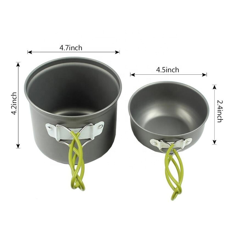 Allamuigh Iniompartha Campála Hiking Backpacking Cookware Set.Your Réiteach Cócaireachta Dlúth deiridh Chun Eachtraí Allamuigh. Tá an Sraith Earraí Cócaireachta Táirge Te seo Deartha Do Dhuine 1-2 Turais Campála Agus Hiking. Foirfe do Backpacking Agus Ullmhacht Éigeandála, Comhcheanglaíonn sé Uirlisí Cócaireachta Riachtanach Le Inaistritheacht uasta.