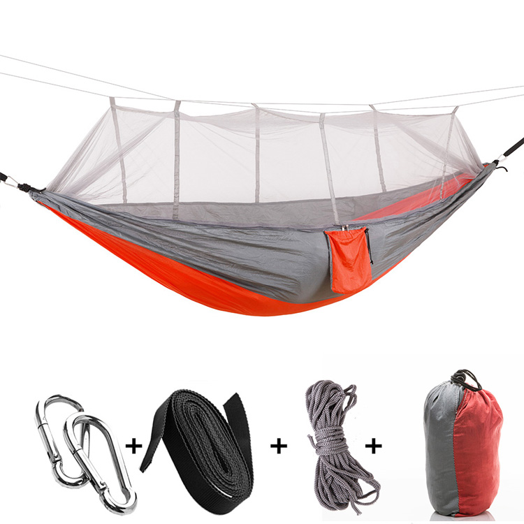 Comhcheanglaíonn an réiteach comhtháite seo hammock compordach, glan mosquito lán-imfhálú, agus strapaí crochta sturdy - ag soláthar gach rud atá ag teastáil le haghaidh socrú láithreach gan gabhálais bhreise nó cóimeáil casta.