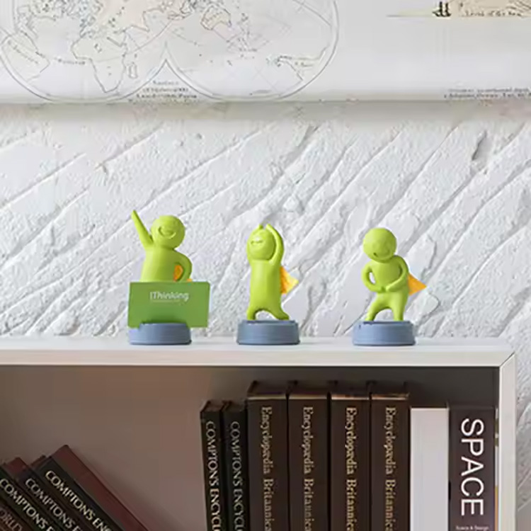 Cruthaíonn an coimeádán meamram seo aon spás oibre go gealgháireach agus é mar fhíorlaoch crógach. Cuireann a staidiúir spraíúil, dhinimiciúil carachtar leis na deasca, rud a fhágann gur tosaithe comhrá iontach é in oifigí nó sa bhaile.