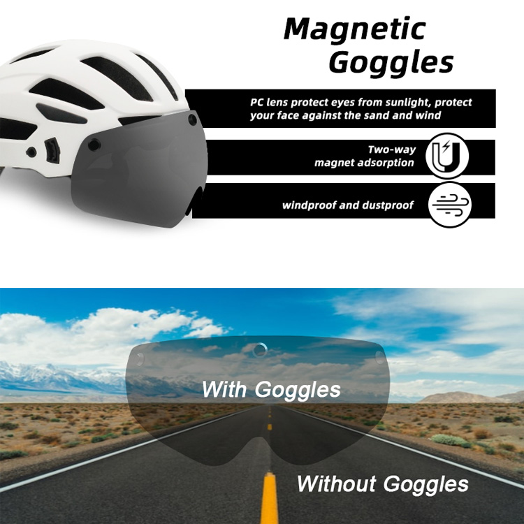 Deimhnithe do rothaíocht bóthair agus rothaíocht sléibhe. Cosnaíonn an scáthlán buaic inbhainte ó ghrian agus smionagar, agus áiríonn an gléas ceamara comhtháite ceamaraí gníomhaíochta chun eachtraí a thaifeadadh.
