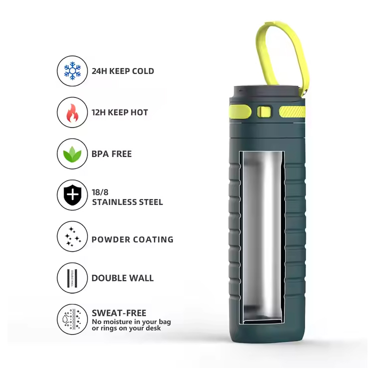 Coinníonn insliú bhfolús balla dúbailte deochanna te ar feadh suas le 12 uair an chloig nó fuar ar feadh suas le 24 uair an chloig. Cibé an bhfuil tú ag sileadh caife ar an mbealach chun oibre nó ag baint sult as uisce oighir tar éis workout, fanann sé i gceart.