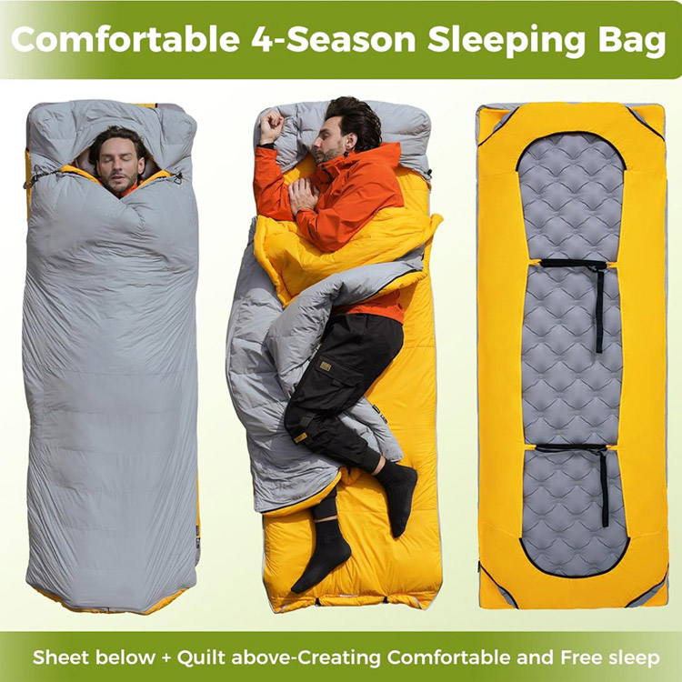 Athraíonn sé go héasca ó mhála mummy traidisiúnta go barrchuilt ildánach ag baint úsáide as zippers deighilte lán-fhad, ag freastal ar roghanna codlata éagsúla agus ag soláthar clúdach solúbtha le linn teochtaí athraitheacha.