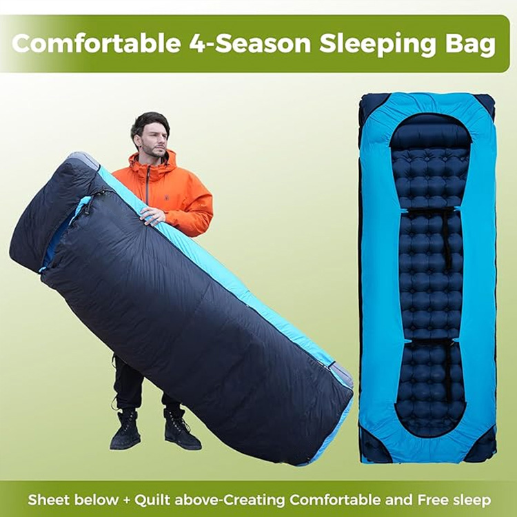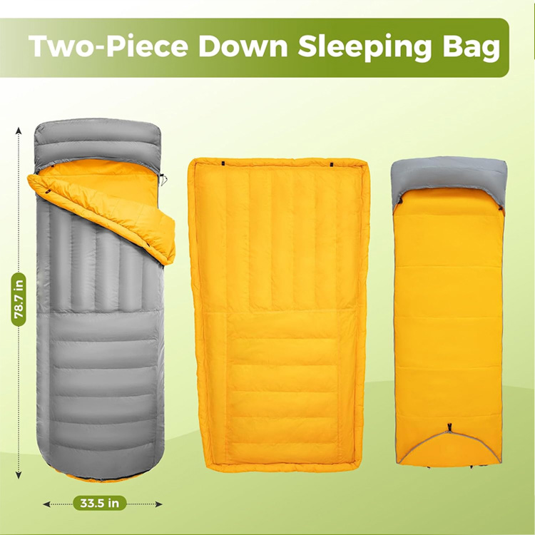 Ultralight Down Camping Blanket Duck Down Sleeping Pad.Your Ultimate Four-Season Sleep System For Wilderness Adventures. Comhcheanglaíonn an Mála Codlata Ultralight Down seo Insliú Préimh Duck Down Le Pad Inséidte Comhtháite. Ag Feidhmiú Mar an dá Barrchuilt agus Mála Codlata, Seachadann sé Teas Uasta Gan Cur Isteach Meáchan.
