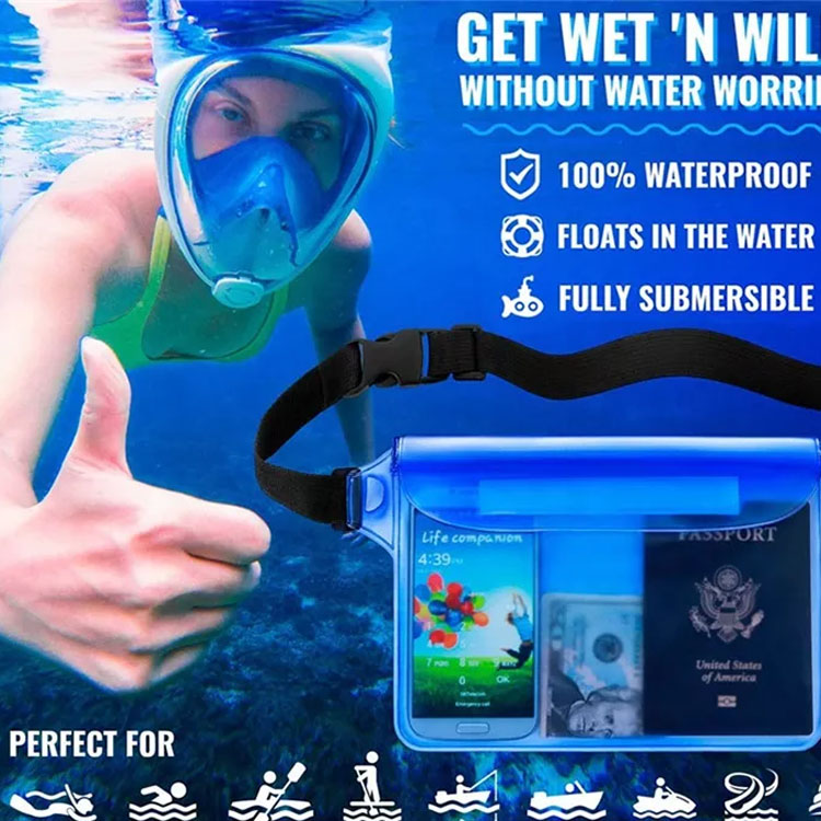 Déanta as PVC ard-dlúis 0.35mm le seams táthaithe ard-minicíochta, cruthaíonn an mála tirim seo bacainn uiscedhíonach do-thruaillithe a sheasann le báite iomlán agus coinníollacha aimsire crua.