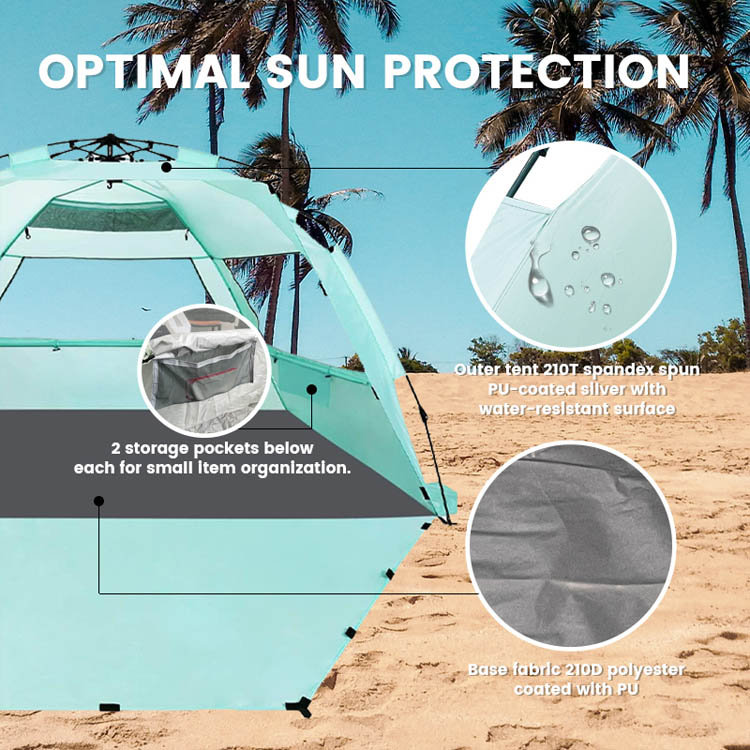 Bulc Mórdhíola Ultralight poileistir Sun Shade Beach Tent.Your Réiteach Mórdhíola Premier Do Chosaint Sun Trá. Gnéithe seo Phuball Scáthaigh Polyester Sun Ultralight A Dearadh Pop-Up Infhillte áisiúil. Foirfe d'Úsáid Bulc Trá Lasmuigh, Comhcheanglaíonn sé Imscaradh Éasca Le Clúdach Scáthaigh Iontaofa.